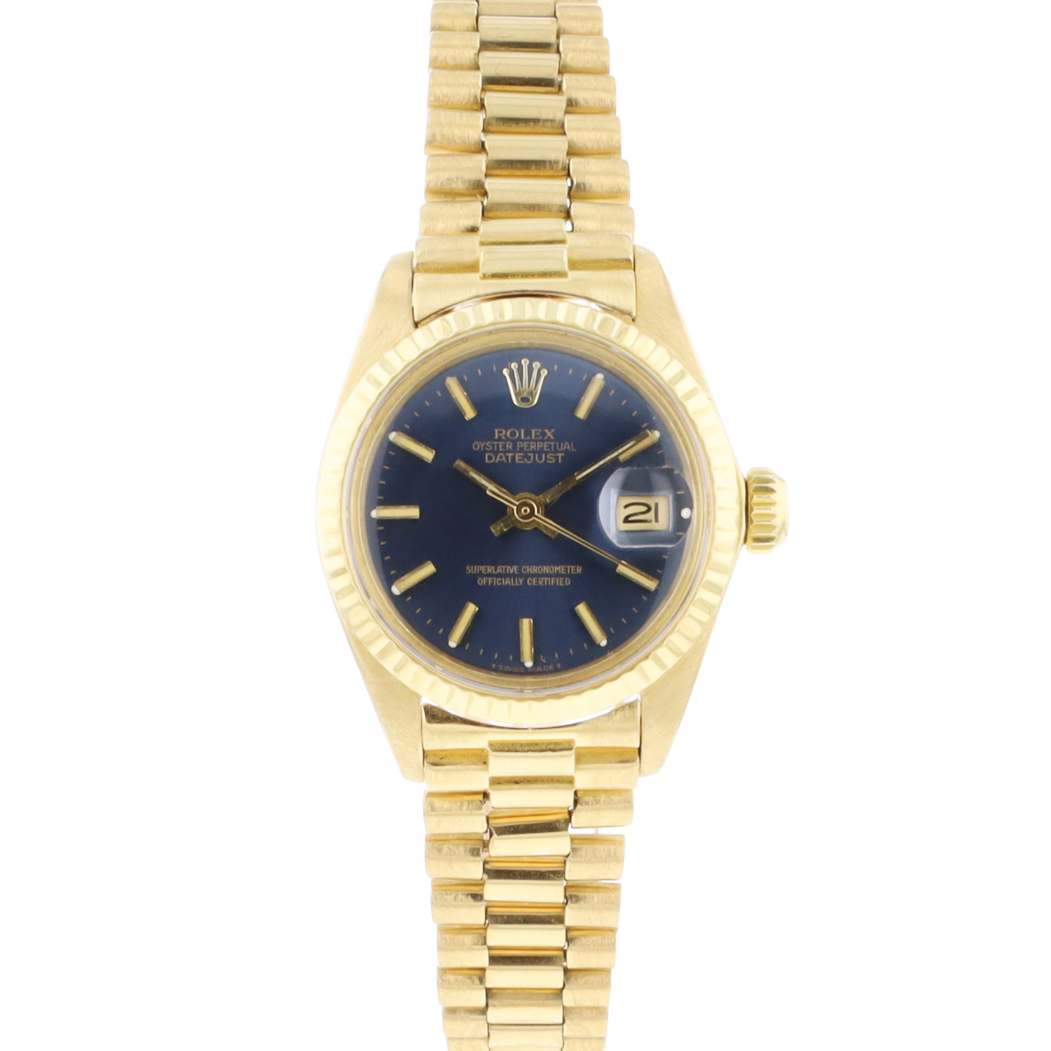 Wir informieren Sie gerne über die Rolex Datejust Lady 26 Yellow Gold President Blue Dial