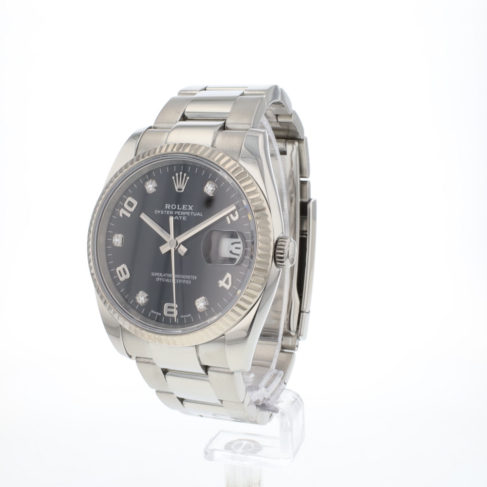 We houden u graag op de hoogte over de Rolex Date 34 Oyster Diamond Arabic Black Dial